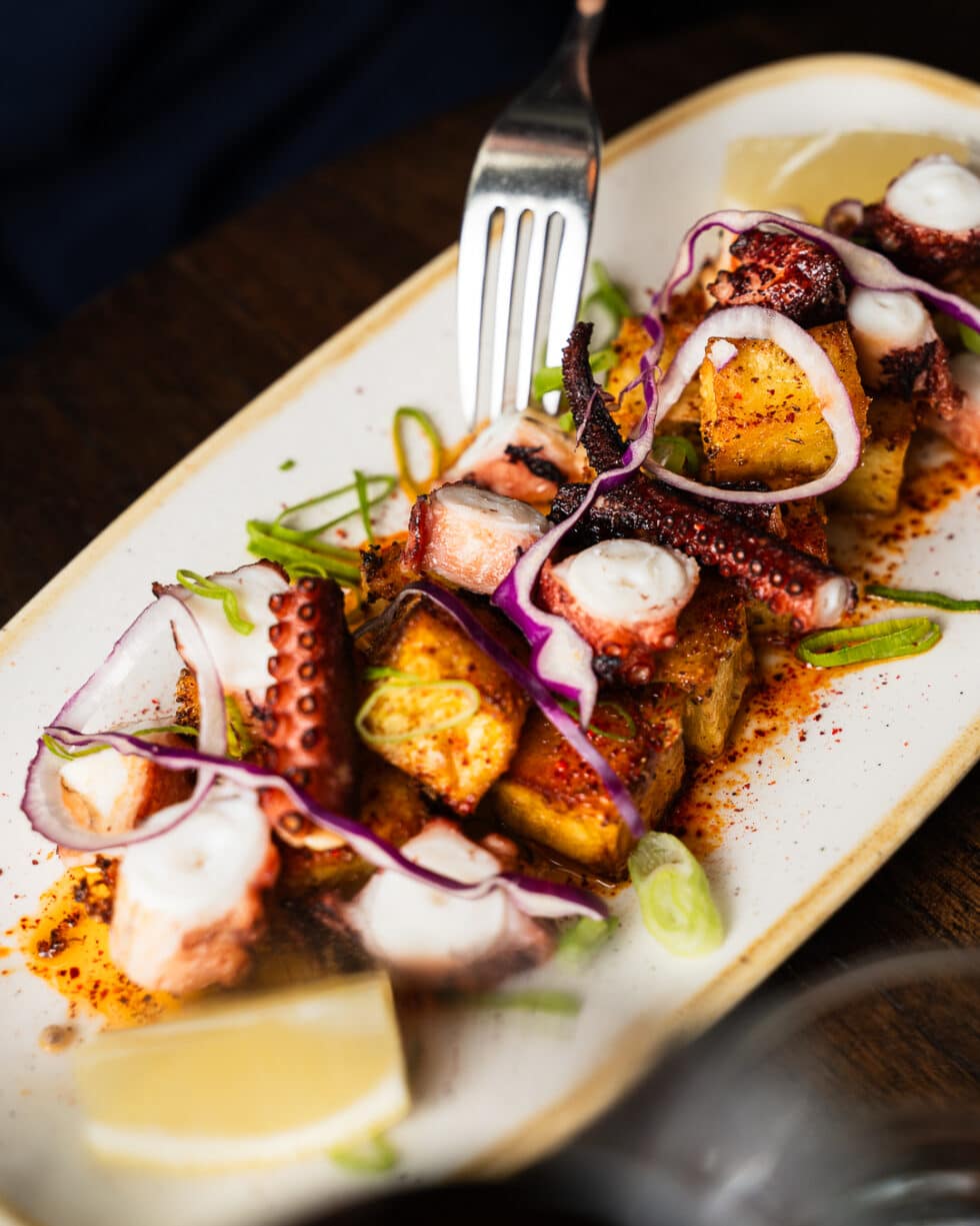 - Maria en Apnée dans l’Aquarium propose des plats de la mer, tels que le Poulpe Purple Rain, un poulpe cuit à l’hibiscus et servi avec une purée de patates douces. Le Thon au caviar, laqué au miel et accompagné de riz noir parfumé, est un autre exemple de l’excellence de cette section, où les produits de la mer sont sublimés par des préparations sophistiquées.